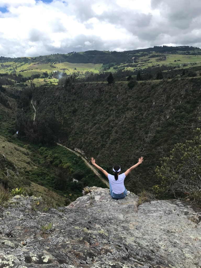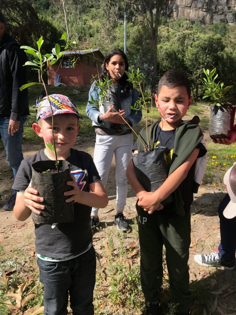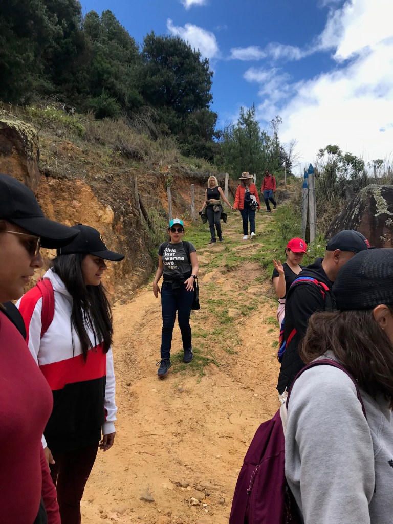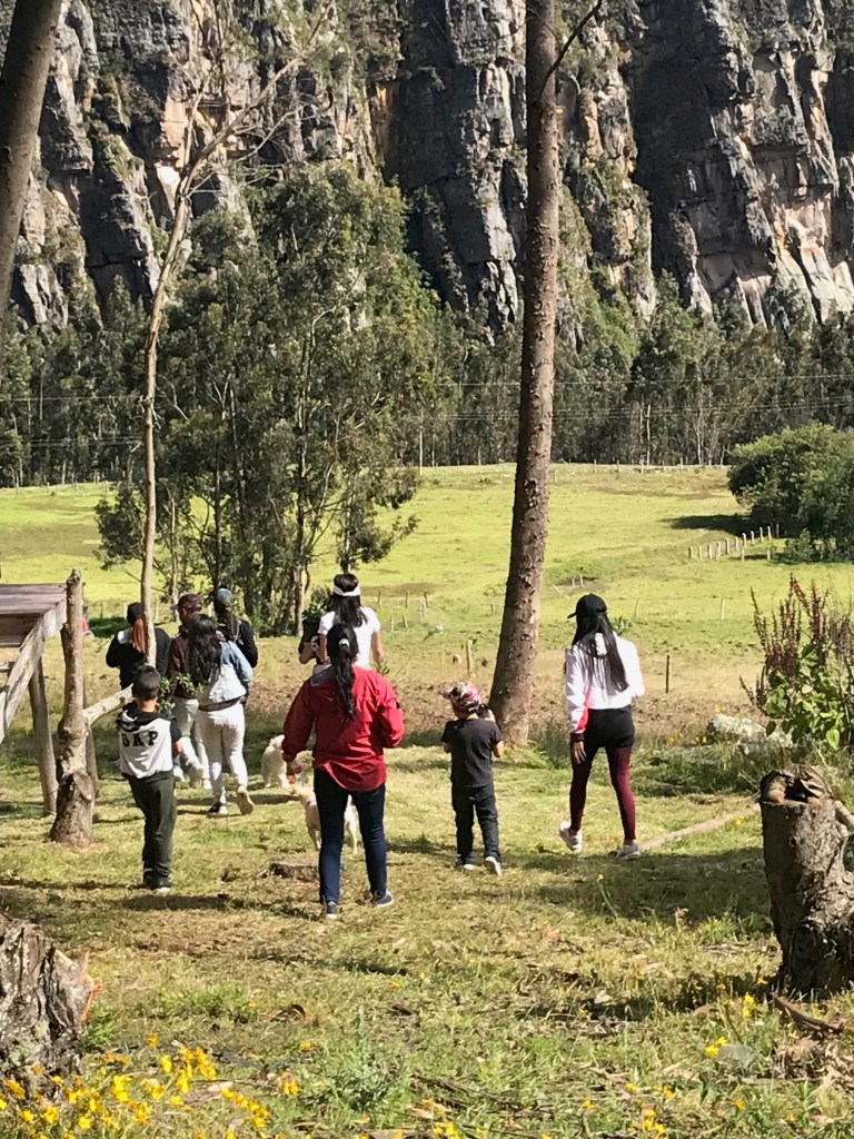 Caminamos bajo el imponente paisaje de las rocas de Suesca, realizamos ejercicios de respiración para el manejo del estrés y la ansiedad, almorzamos con la comunidad campesina local y sembramos árboles nativos en apoyo a la restauración del bosque alto andino de la Cuenca Alta del Río Bogotá.